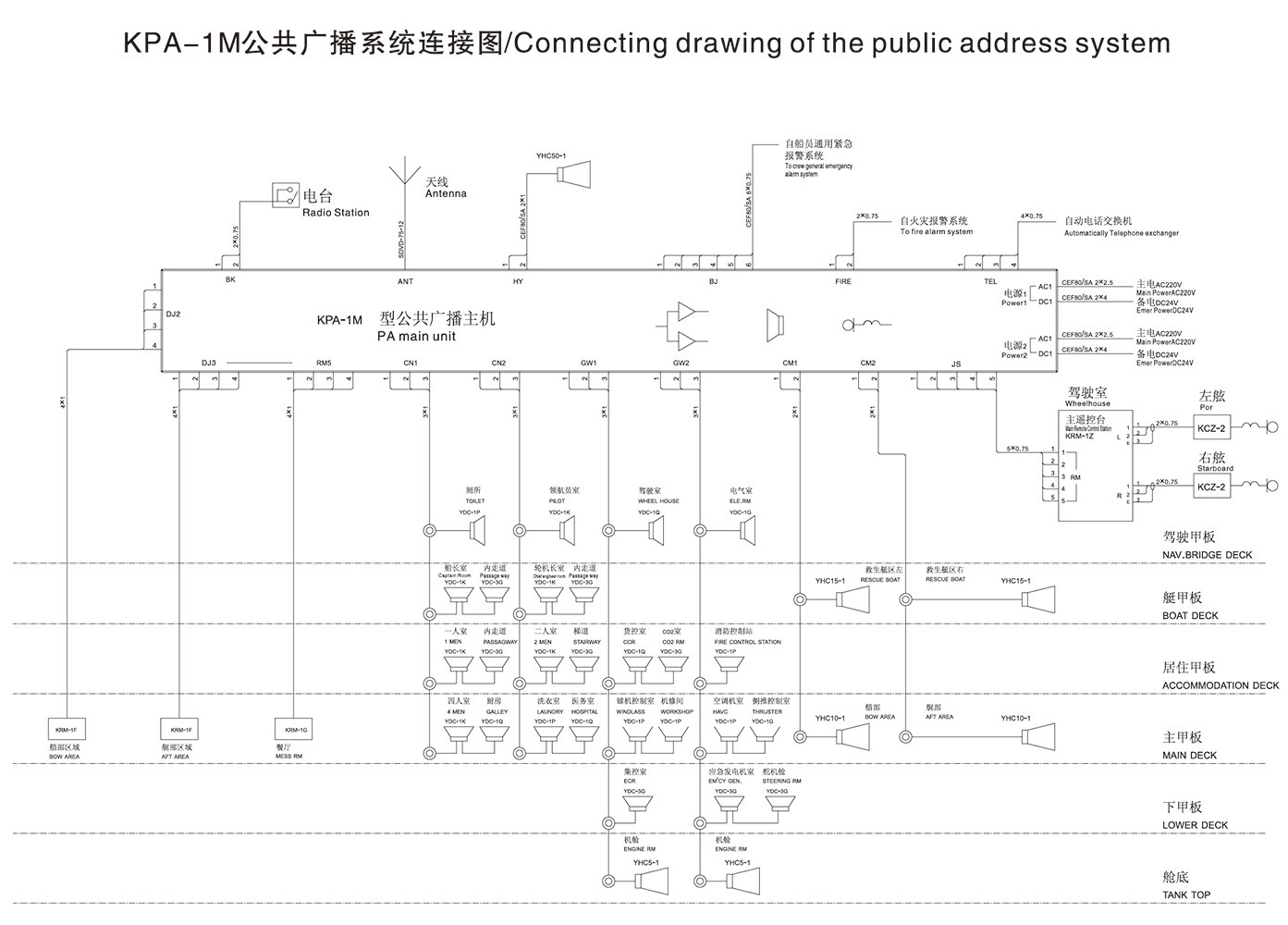 用于除客船外的各類船舶,作為全船廣播,船令指揮,對講,對外喊話以及娛樂廣播等用途,并可接入通用緊急報警信號及火災(zāi)報警信號,也適用與海上平臺及港口等海洋工程。